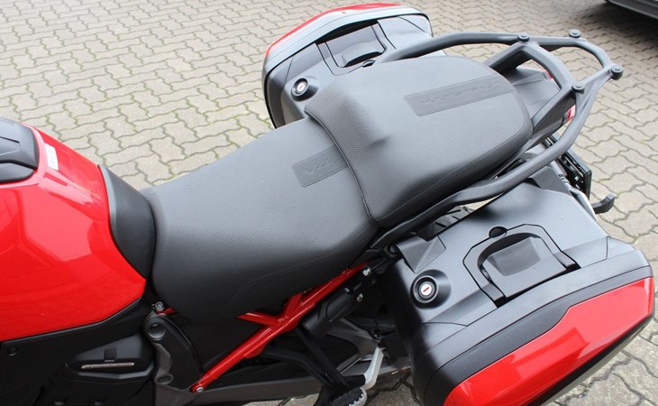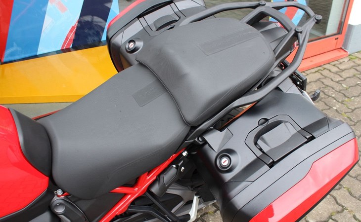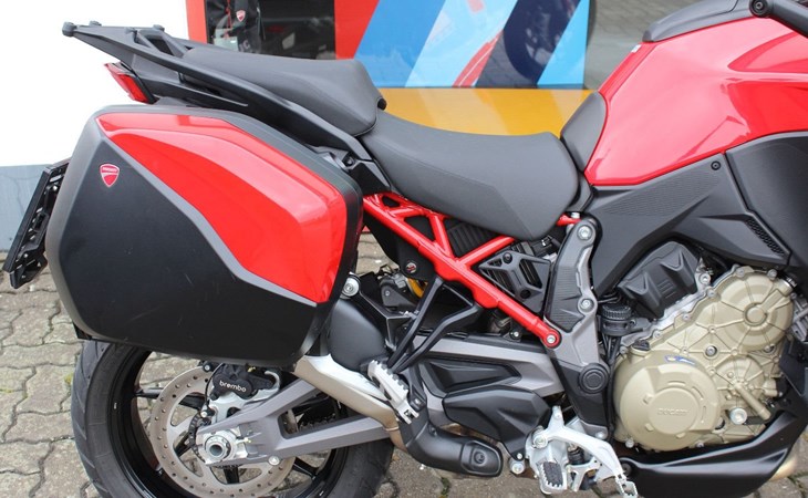 Es wurden nachträglich original Ducati Seitenkoffer in Fahrzeugfarbe montiert.
